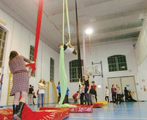 Volteggiare in aria, lanciandosi da un trapezio all’altro. O creare artistiche figure, abbracciati a un telo che pende dal soffitto. Le discipline tipiche del circo adesso si possono imparare anche nella palestra della scuola primaria Edoardo Mosca di via Monte Grappa, in cui sabato scorso è stata inaugurata la prima “palestra di acrobatica aerea” della provincia di Cuneo.
