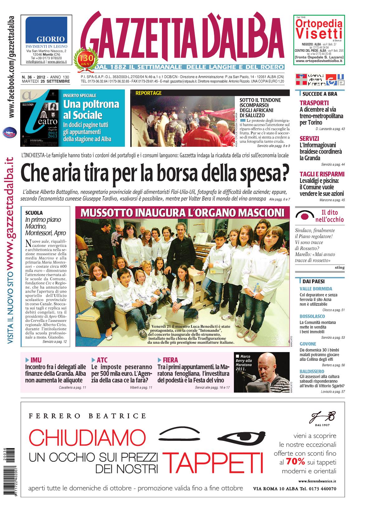 La copertina del 25 settembre 24 Settembre 2012 Alba Versione accessibile In anteprima la copertina di Gazzetta d’Alba che sarà in edicola domani, 25 settembre 2012. Copertina prima pagina