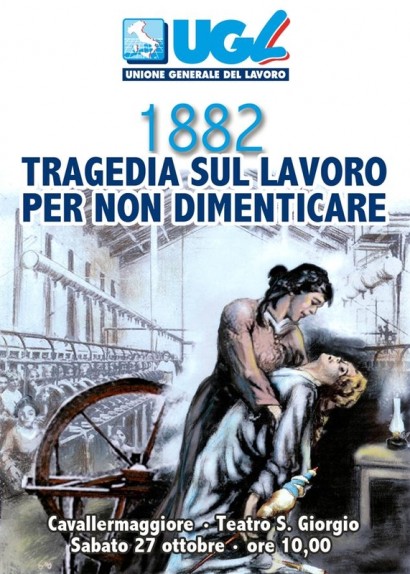 L’Ugl rende omaggio alle 12 operaie scomparse nella tragedia di Cavallermaggiore con il convegno dal titolo “1882. Tragedia sul lavoro. Per non dimenticare”, che si terrà sabato 27 ottobre, alle 10, al teatro San Giorgio di Cavallermaggiore, in provincia di Cuneo. All’iniziativa parteciperà il segretario generale dell’Ugl, Giovanni Centrella.