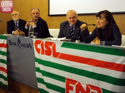 La sala convegni della Banca d’Alba, in via Cavour 4 era gremita martedì 6 novembre. Oltre 120 i presenti per festeggiare il 60° dei pensionati Cisl albesi. Tra gli altri, erano presenti il vicepresidente della Provincia, Giuseppe Rossetto e il sindaco di Alba, Maurizio Marello. Apprezzati i relatori Giovanni Battista Sgritta, sociologo de La Sapienza di Roma e Vincenza Pellegrino, sociologa dell’Università di Parma. Tema del convegno, il rapporto tra giovani e anziani, in un tempo nel quale, pericolosamente, avanza l’idea di togliere agli uni per garantire il futuro degli altri. Un conflitto generazionale dunque? Per il professor Sgritta in realtà «il conflitto non è tra i giovani e gli anziani ma tra gli anziani di oggi, garantiti da una serie di diritti conquistati nel corso del ‘900, e gli anziani di domani che vivranno una condizione assai diversa». Per Pellegrino invece serve ripensare luoghi di condivisione comuni tra le generazioni, «ciò che oggi non possono più essere i partiti, oppure le Acli o anche l’Avis, organizzazioni non più frequentate dai giovani». Presenti in sala anche gli alunni della 5ª A del liceo scientifico “Cocito” di Alba e la 5ª D dell’istituto “Cillario-Ferrero”. Le due classi, insieme ai pensionati del Centro anziani del quartiere Moretta, sono stati protagonisti di un video di 12’ su sanità, assistenza, pensioni, lavoro e studio, realizzato per l’occasione e proiettato in apertura di mattinata.