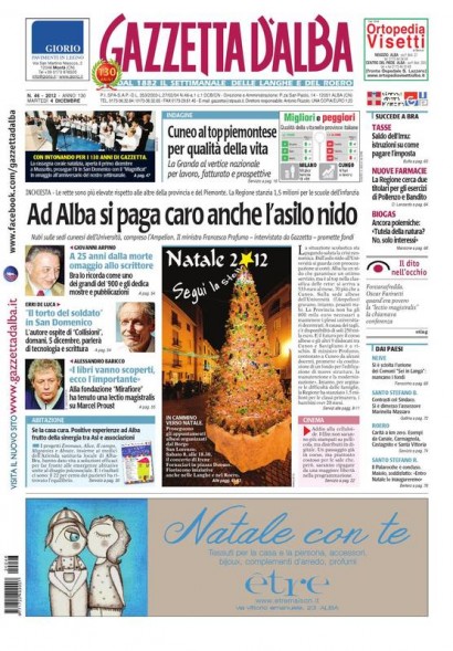 La copertina del 4 dicembre 3 Dicembre 2012 Alba Versione accessibile In anteprima la copertina di Gazzetta d’Alba che sarà in edicola domani, 4 dicembre 2012. Copertinaprima pagina