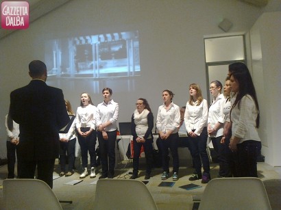La serata si è aperta con gli interventi della professoressa Serena Micca, del pittore Dino Pasquero e del maestro Paolo Paglia che hanno parlato del colore Bianco rispettivamente nella letteratura, nella pittura e nella musica; di seguito le nostre ragazze hanno avuto la possibilità di eseguire quattro brani del loro repertorio e sono state molto apprezzate dal pubblico in sala, in particolare dall’assessore Giuliana Borsa, che come ex alunna del liceo Govone ha condiviso con i presenti un ricordo commosso della preside Alessandria, e da Paglia, che ha invitato il nostro coro a esibirsi con l’Orchestra da camera di Guarene, da lui diretta, il 2 marzo nella chiesa di San Giuseppe ad Alba. È stato particolarmente emozionante vedere l’entusiasmo e la bravura delle nostre ragazze che, nonostante i numerosi impegni scolastici, si dedicano con passione al coro.