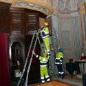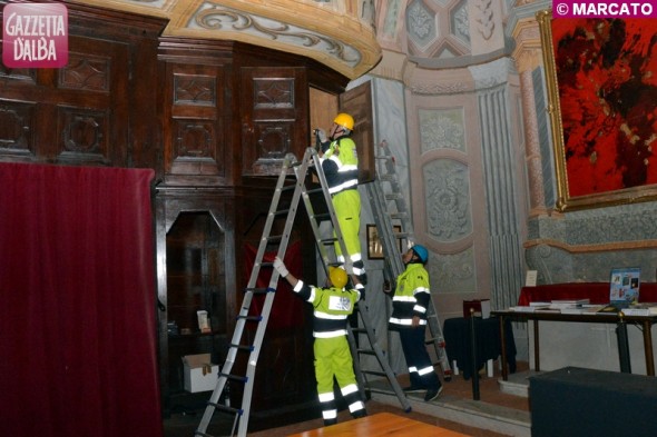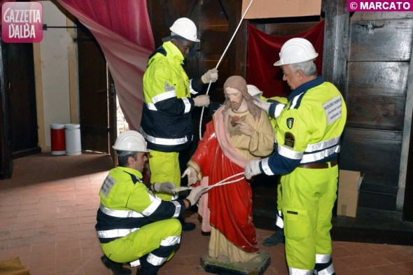 Sabato presso la chiesa di San Giuseppe è stato simulato un evento sismico in seguito al quale sono intervenuti gli operatori del Gruppo di tutela dei beni culturali per il recupero di opere d’arte custodite all’interno dei luoghi di culto. L’azione è stata coordinata dalla squadra logistica, situata nel campo base presso il Centro collaudi di corso Bra.