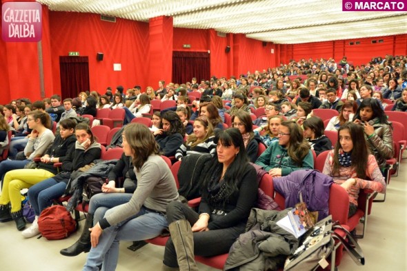 La scrittrice Francesca Fabris con gli studenti dei licei Cocito e Da Vinci e dell’istituto Piera Cillario Ferrero che, in sala Ordet giovedì 4 aprile, hanno assistito alla proiezione del documentario La lista del console. Fabris, ad Alba per i progetti nelle scuole della Settimana della comunicazione, sarà tra i relatori che domani, venerdì 5 aprile alle 21, in sala Fenoglio parteciperanno alla conferenza Ruanda. 100 giorni, un milione di morti, promossa dal centro culturale San Paolo, Gazzetta d’Alba, Diocesi, Ufficio missionario diocesano, Ufficio della pace e Ufficio stranieri.