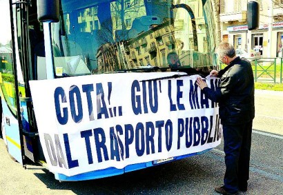 La soluzione? Un taglio lineare previsto per il mese di giugno del 50 per cento sui trasporti su gomma e del 34 per cento su rotaia. Alla notizia gli enti locali hanno reagito, invitati dall’Associazione nazionale Comuni italiani, con la giornata di protesta.