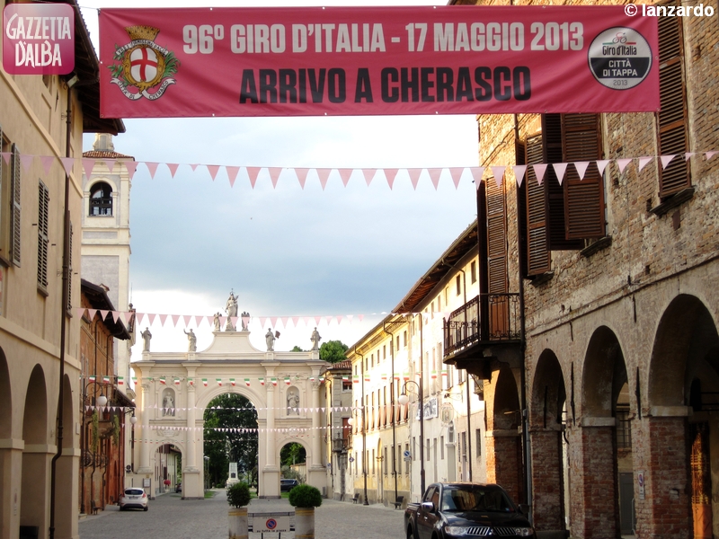 I colori, o meglio il colore rosa, adorna già il centro storico di Cherasco. Diverse famiglie hanno deciso di partecipare al concorso Balconi in rosa indetto dal locale comitato tappa, cimentandosi in vere e proprie opere d’arte. In piazza del Municipio troneggia invece la mega-bici del gruppo Piumatti-Bra servizi, tra gli sponsor principali di questa sede di tappa.
