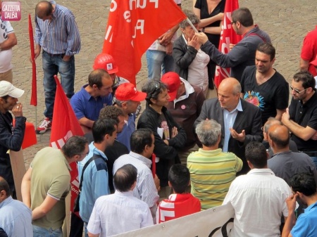ALBA Ieri, giovedì 27 giugno, il sindaco di Alba Maurizio Marello ha incontrato in piazza Duomo i dipendenti della ditta “Aldo Barberis”, scesi in strada per protestare contro gli oltre venti licenziamenti, effettuati senza ricorrere prima alla cassa integrazione straordinaria o ad altri ammortizzatori sociali.