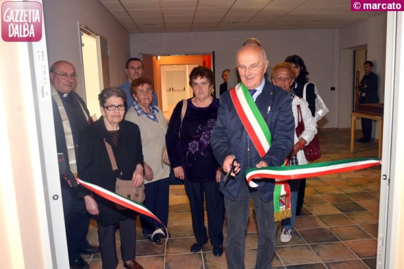 CANALE Taglio del nastro e benedizione del parroco per gli ultimi sei alloggi della “comunità di tipo familiare per anziani”, detta Mombirone, nel complesso della Cittadella della salute.