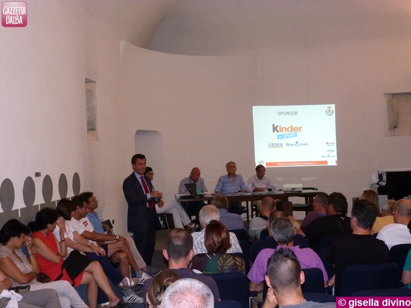CALCIO Martedì 30 luglio, in sala “Fenoglio”, è stata presentata alle famiglie l’Accademia calcio Alba, il progetto per la promozione sociale e sportiva che raggruppa il Gsr Ferrero, l’Albese e il Koala. Supportano l’iniziativa gli sponsor Ferrero (con il progetto Kinder+sport), Egea e Banca d’Alba. All’incontro coordinato dal presidente dell’Accademia e assessore comunale Olindo Cervella hanno partecipato il vicepresidente Gianni Mercorella, il consigliere Cristiano Santarelli, il capo-progetto Fabrizio Martino, il segretario e tesoriere Nadia Germano.