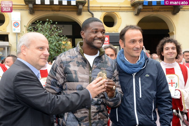 Assecondando la vocazione sempre più internazionale della Fiera del tartufo, gli organizzatori della kermesse dedicata al Tuber magnatum pico hanno assegnato la prima “pepita bianca” della stagione all’atleta americano Justin Gatlin, che ha ricevuto il riconoscimento (accompagnato da una pizza “tartufata”) dalle mani dell’assessore regionale Alberto Cirio, del sindaco di Alba Maurizio Marello, dell’assessore comunale albese Olindo Cervella e del presidente dell’Ente fiera Antonio Degiacomi.