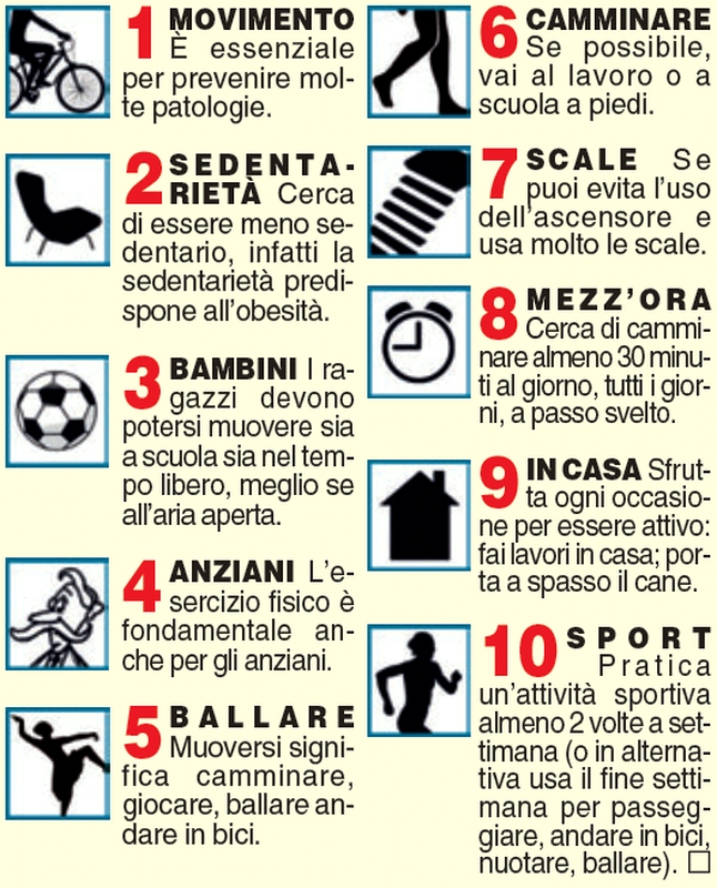 L’IMPORTANTE È MUOVERSI I consigli del Ministero della sanità