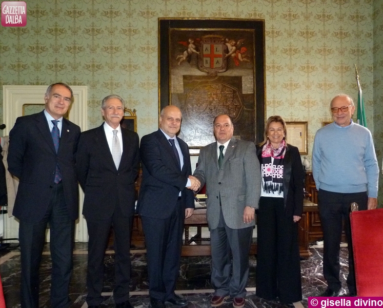 ALBA Nei giorni scorsi il sindaco di Alba Maurizio Marello, insieme al vicesindaco Franco Foglino, ha accolto in Municipio Adrián Sánchez, sindaco di Exaltacion de la Cruz, il dipartimento dell’Argentina in provincia di Buenos Aires con capoluogo Capilla del Señor. Sánchez è arrivato ad Alba accompagnato dalla moglie Gladys Banegas, da Gustavo Moreno, ambasciatore e console generale della Repubblica argentina a Milano e da Pietro Maria Brunetti, direttore delle relazioni istituzionali della Ferrero. Un incontro gioviale di circa mezz’ora e poi la visita alla storica sala consigliare del Palazzo comunale, chiusa al pubblico da lunedì 11 novembre per lavori di ristrutturazione.