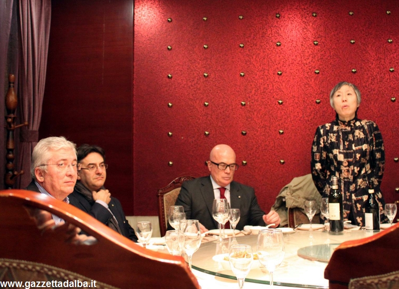 Nella foto, un momento dell’intervento della presidente delle Camere di commercio cinesi per lo sviluppo economico Yu Lu, il direttore dell’Agenzia per la Cina (alla destra della signora) Armando Tchang, il presidente dell’associazione che cura la candidatura Unesco dei paesaggi vitivinicoli di Langhe-Roero e Monferrato Roberto Cerrato e Claudio Trinchero.
