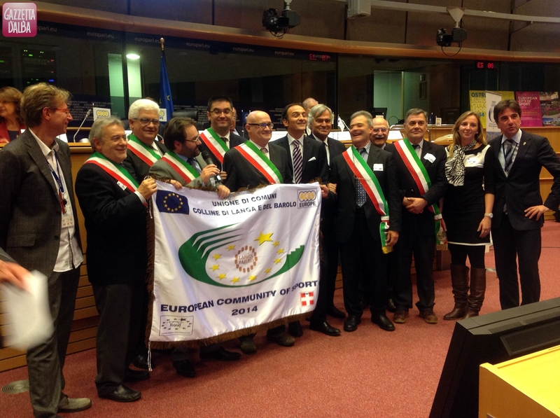 COMUNI DEL BAROLO Dopo le “Città” e i Comuni” adesso anche le “Comunità” entrano nel circuito dell’Aces Europe, l’associazione che in sinergia con la Commissione europea conferisce ai territori il titolo di ambasciatori internazionali dello sport. Tra le prime Comunità ad aggiudicarsi in Europa il prestigioso riconoscimento c’è l’Unione di Comuni “Colline di Langa e del Barolo”, che il 6 novembre a Bruxelles, presso la sede del Parlamento europeo, ha ricevuto ufficialmente l’investitura di “Comunità europea dello sport 2014”. Ad accompagnare la delegazione composta dai Sindaci di Novello, Grinzane Cavour, Verduno, Roddi, Castiglione Falletto, Sinio e Monchiero, anche l’assessore allo Sport della Regione Piemonte, Alberto Cirio, promotore della candidatura.