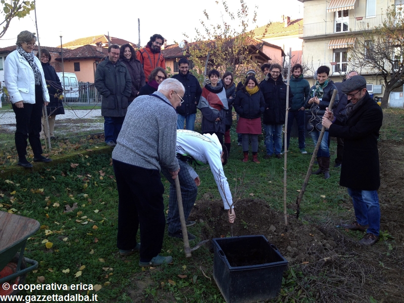 ALBA Nei giorni scorsi dipendenti e collaboratori della cooperativa Erica hanno messo a dimora nel giardino antistante la sede di via Santa Margherita 26 due esemplari di Asimina triloba in ricordo di Giorgio Cavallo, scomparso lo scorso 25 luglio all’età di 45 anni. Erano presenti, tra gli altri, il fratello Roberto, presidente di Erica, e i genitori Anna e Oreste. Gli alberi piantati (uno dei quali donato da Annalisa Sartoris) fanno parte della famiglia delle Annonacee originarie del Nord America che, dopo il terzo anno di vita, producono frutti simili a banane.