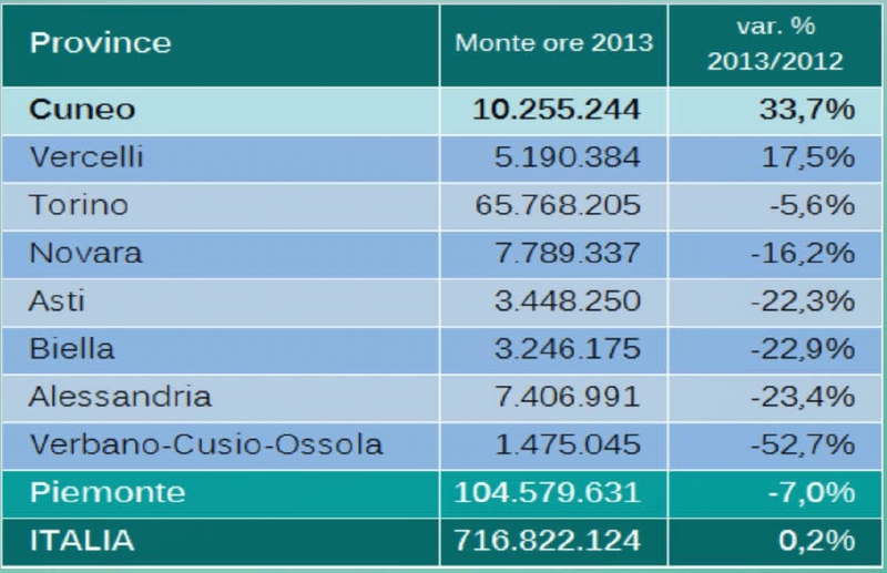 Nel 2013 le ore di cassa integrazione in provincia di Cuneo sono arrivate a 10,3 milioni