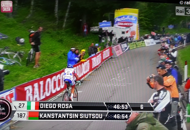 CICLISMO Prestazione superlativa del professionista di Corneliano d’Alba Diego Rosa che nella cronometro conclusiva della “Settimana internazionale Coppi e Bartali” – 10 km con una durissima rampa nel finale – si è classificato terzo, ad appena 12″ dalla vittoria.