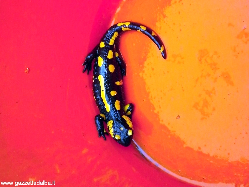 NOVELLO Curioso incontro in un cortile di una casa di Langa. Non è molto comune trovare una salamandra vicino alle case. Questi animali prediligono i piccoli corsi d’acqua poco profondi e gli ambienti freschi e umidi. La presenza di questi animaletti, inoltre, è un segno di pulizia dell’ambiente. La salamandra, dopo essere stata fotografata, è stata liberata vicino a un ruscello.