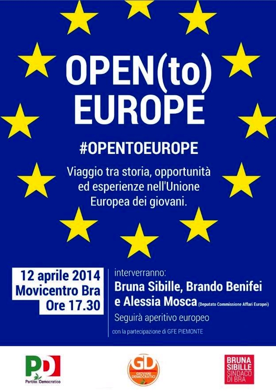 BRA L‘Unione Europea non più come figura distante e lontana, ma come motore di occasioni e opportunità, soprattutto per i giovani. Ecco l’immagine che i Giovani democratici vogliono presentare, assieme a tutto il Partito democratico, sabato 12 aprile alle 17.30. Nel Movicentro di Bra si alterneranno associazioni, studenti e lavoratori, per portare a tutto il pubblico i loro racconti ed esperienze come cittadini europei. Un momento di riflessione e di condivisione su come sia l’Europa in questo momento, e su come vorremmo diventasse: più aperta, più vicina, e più unita.