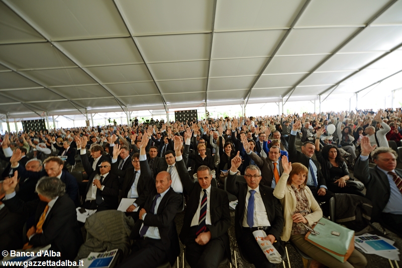 ALBA Domenica 18 maggio erano in 14.006 i soci all’assemblea più partecipata d’Italia, quella di Banca d’Alba. Sono giunti da tutti i territori in cui opera l’istituto bancario: da Alba, dalle Langhe e dal Roero, dall’astigiano, dall’alessandrino, da Torino e dal canavese, dalla Liguria e dai laghi del Verbano-Cusio-Ossola. Sette province rappresentate per un totale di 270 comuni. È stato un momento di aggregazione, confronto, decisioni e festa, nel quale è stato approvato quasi all’unanimità il bilancio dell’esercizio 2013, che ha visto i principali numeri in aumento rispetto all’esercizio precedente: volumi per 7,8 miliardi, raccolta di 5 miliardi, patrimonio di vigilanza a 322 milioni, 70 filiali, 126 mila clienti ma soprattutto 45 mila soci, che ne fanno la prima in Italia per compagine sociale.