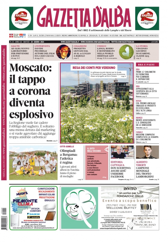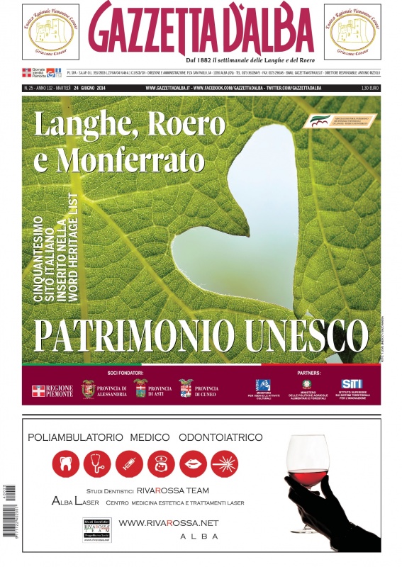 ANTEPRIMA. La copertina e la sovracopertina Unesco di Gazzetta d’Alba del 24 giugno 2014 23 Giugno 2014 Alba, Primo Piano Versione accessibile La copertina e la sovracopertina dedicata al riconoscimento Unesco del numero 25 di Gazzetta d’Alba, disponibile in edicola e in formato digitale a partire da martedì 24 giugno 2014. anteprimaCopertinaUnesco