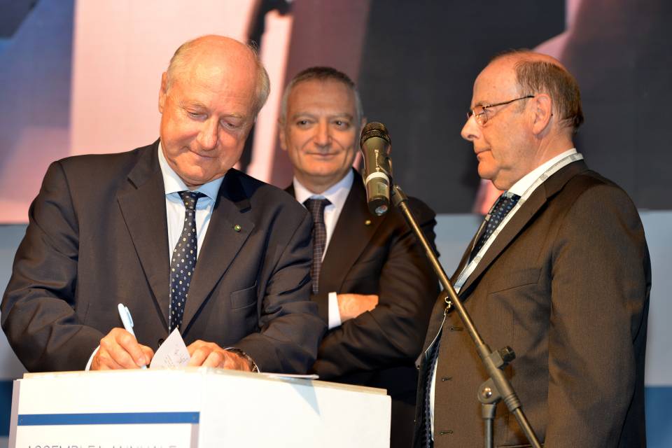 L’ambasciatore Francesco Paolo Fulci, presidente di Ferrero spa, ha ritirato il riconoscimento assegnato dagli industriali cuneesi al gruppo dolciario internazionale nato ad Alba. La motivazione: «Alla famiglia Ferrero per i valori, l’eccellenza imprenditoriale e la responsabilità sociale nati ad Alba e diffusi nel mondo»
