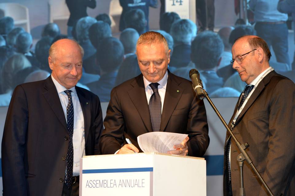 RACCONIGI Confindustria Alessandria e Confindustria Cuneo hanno siglato lunedì 16 giugno nel Castello di Racconigi il protocollo di Federazione che porterà alla nascita di un’unica area, funzionale e geografica, dotata di un nuovo modello organizzativo, attraverso l’integrazione delle due associazioni territoriali. La storica intesa attua le direttive della recente riforma Pesenti, varata per snellire, semplificare e ridurre i costi dell’organizzazione del sistema Confindustria, in un’ottica di potenziamento dei servizi offerti alle imprese associate. La nuova struttura sarà composta dalle 500 aziende (27mila addetti) di Confindustria Alessandria e dalle 1.200 aziende (60mila addetti) di Confindustria Cuneo.