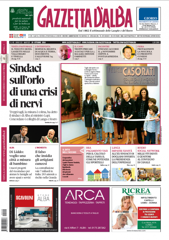 La copertina di Gazzetta d’Alba del 28 ottobre 2014 27 Ottobre 2014 Alba, Primo Piano Versione accessibile La copertina del numero 40 di Gazzetta d’Alba, disponibile in edicola e in formato digitale a partire da martedì 28 ottobre 2014. anteprimaCopertina