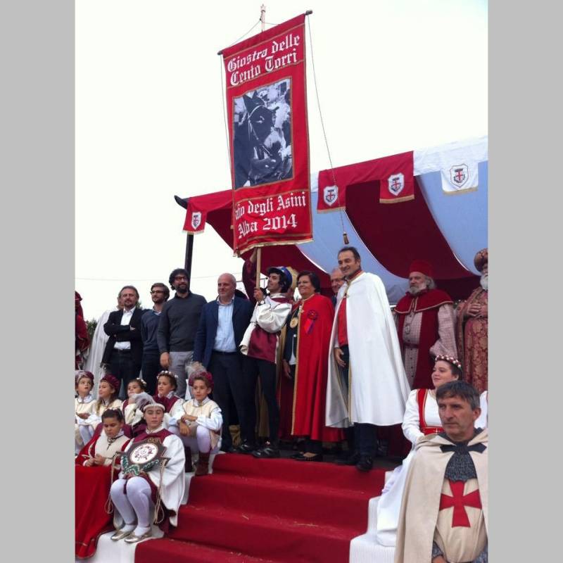 Il premio è stato consegnato a fine gara al Presidente del Borgo Santa Barbara Adele Drocco, dal sindaco di Alba Maurizio Marello insieme all’assessore comunale al turismo Fabio Tripaldi, al presidente della Giostra delle Cento torri Alberto Cirio e al Presidente dell’Ente Fiera internazionale del tartufo bianco d’Alba Antonio Degiacomi.