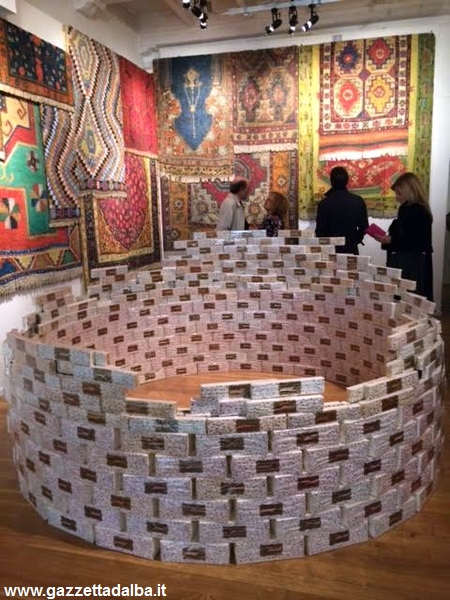 egle-sebaste-torre-torrone-torinoTORINO Dal 7 al 9 novembre l’”Oval” di Torino, per il quinto anno consecutivo, ha ospitato Artissima, internazionale d’arte contemporanea dedicata alle arti visive e importante evento culturale, dove hanno trovato spazio le opere di artisti emergenti e affermati del panorama mondiale. A Palazzo Cavour, nell’ambito di Artissima, è stata allestita “Shit and Die”, mostra realizzata da 50 artisti che sarà visitabile fino all’11 gennaio. Il curatore è Maurizio Cattelan, affiancato dalle giovani Myriam Ben Salah e Marta Papini. Tra le opere esposte, spicca quella del torinese Aldo Mondino (1938–2005), dedicata a un prodotto alimentare di eccellenza delle Langhe: il torrone.