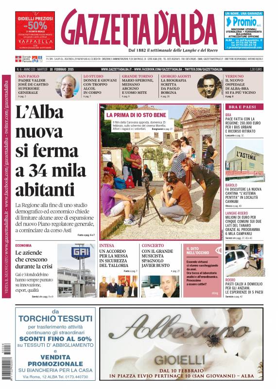 La copertina di Gazzetta d’Alba del 10 febbraio 2015 9 Febbraio 2015 Alba, Primo Piano Versione accessibile La copertina del numero 6 di Gazzetta d’Alba, disponibile in edicola e in formato digitale a partire da martedì 10 febbraio 2015. anteprimaCopertina