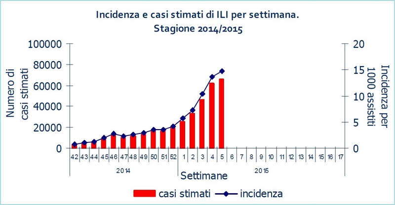 TORINO L’incidenza delle sindromi influenzali nella quinta settimana del 2015 è in aumento, con 14,7 casi ogni mille assistiti: si stima che siano 64.000 i piemontesi colpiti dall’influenza.
