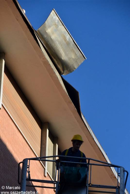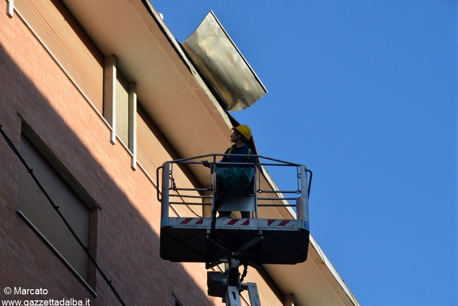 ALBA Nel tardo pomeriggio di oggi, lunedì 30 marzo, le raffiche di vento (di cui parliamo anche QUI) hanno sollevato la copertura di un palazzo in corso Michele Coppino. Sono intervenuti i Vigili del fuoco mentre Carabinieri e Vigili urbani bloccavano il traffico nel tratto tra via beato Giacomo Alberione e via Alfieri.