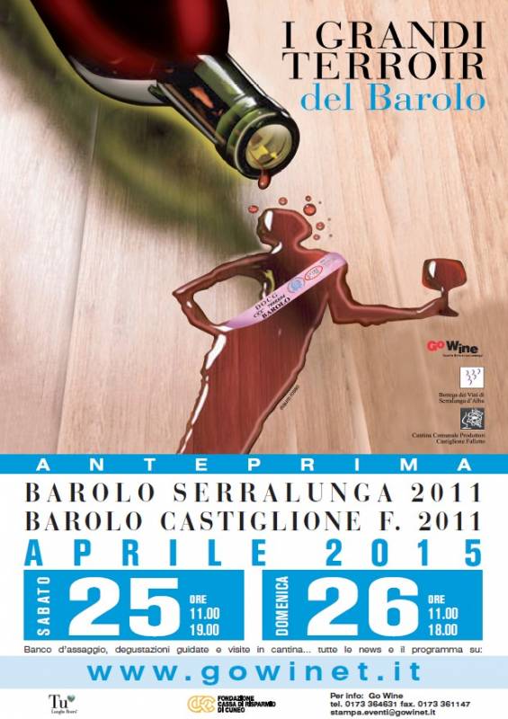 ALBA Si annunciano le date dell’edizione 2015 de “I grandi terroir del Barolo”, evento ideato da Go Wine nel 2010 e promosso in collaborazione con la cantina comunale di Castiglione Falletto e la Bottega del vino di Serralunga d’Alba: anche quest’anno sarà possibile trascorrere un weekend ricco di appuntamenti che porterà il pubblico a conoscere “sul campo” la nuova annata di uno dei più grandi vini del mondo. I giorni sono quelli di sabato 25 e domenica 26 aprile: le due botteghe ospiteranno ognuna il banco d’assaggio dei diversi cru che caratterizzano i Comuni di produzione, confermando il format di un evento che esalta la ricchezza e l’articolazione dei terroir del Barolo di due importanti paesi del disciplinare, individuando momenti di promozione e approfondimento della nuova annata. Per ulteriori informazioni www.gowinet.it.
