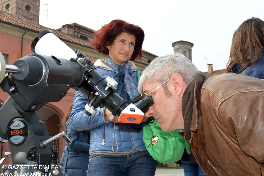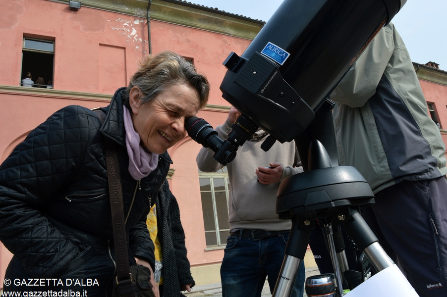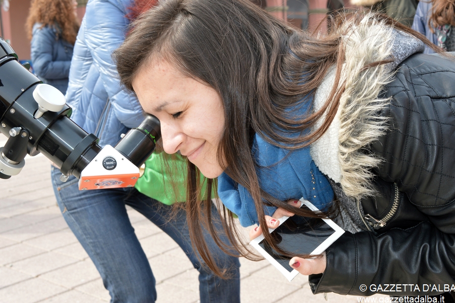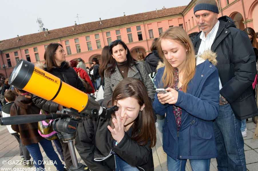 Grande partecipazione di studenti – nelle immagini ragazzi dei licei Pinot Gallizio e Giuseppe Govone, classe prima A – e cittadini nel cortile della Maddalena ad Alba all’iniziativa dedicata all’osservazione dell’eclissi allestita dal museo civico Federico Eusebio con Ambiente e cultura grazie all’impegno del gruppo astrofili monferrini.