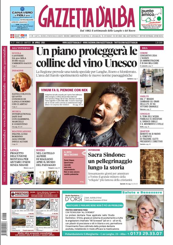 La copertina di Gazzetta d’Alba del 28 aprile 2015 27 Aprile 2015 Alba, Primo Piano Versione accessibile La copertina del numero 17 di Gazzetta d’Alba, disponibile in edicola e in formato digitale a partire da martedì 28 aprile 2015. anteprimaCopertina