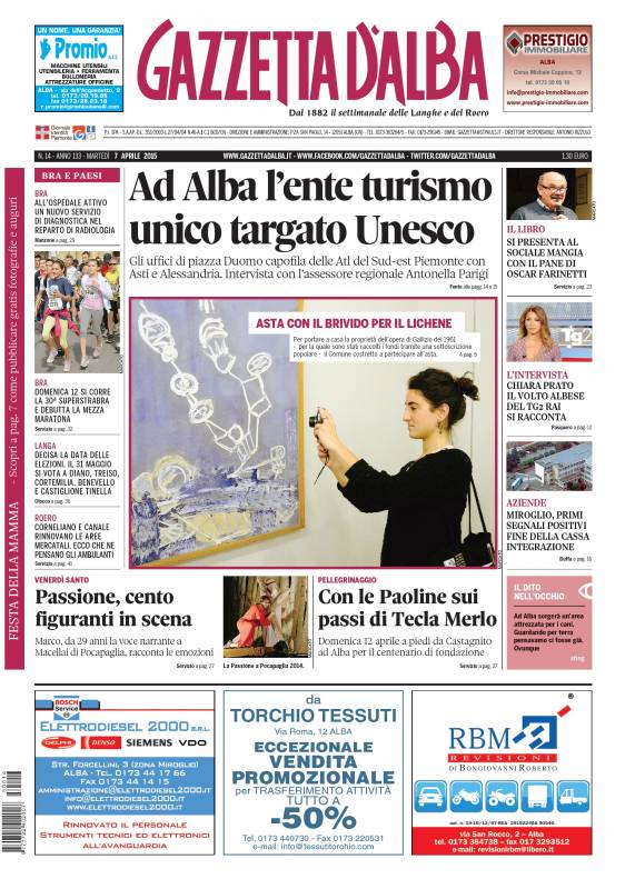 La copertina di Gazzetta d’Alba del 7 aprile 2015 3 Aprile 2015 Alba, Primo Piano Versione accessibile La copertina del numero 14 di Gazzetta d’Alba, disponibile in edicola da sabato 4 aprile 2015. Agli abbonati il giornale verrà recapitato a partire da martedì 7. anteprimaCopertina