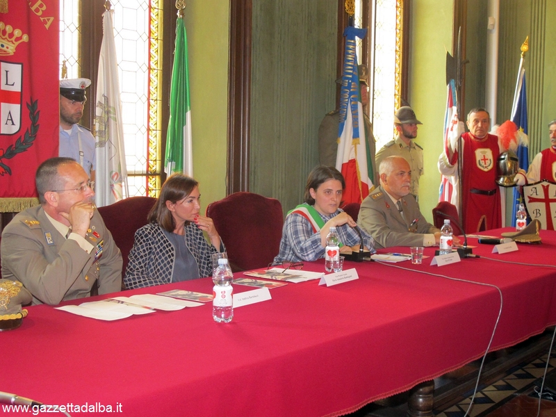 Nella sala consiliare “T. Bubbio” l’Assessore all’Ufficio della Pace e ai Gemellaggi Anna Chiara Cavallotto ha introdotto gli interventi del Vice Sindaco di Alba Elena Di Liddo, del Vice Prefetto Vicario Maria Antonietta Bambagiotti, del Col. Andrea Bartolucci, Capo dell’ufficio comunicazione e del Col. Antonio Zerrillo, capo di questo progetto, del Comando della Regione Militare Nord di Torino, che hanno illustrato con grande competenza il progetto e accompagnato i presenti nella visita dell’esposizione, all’interno del palazzo della Banca d’Alba.