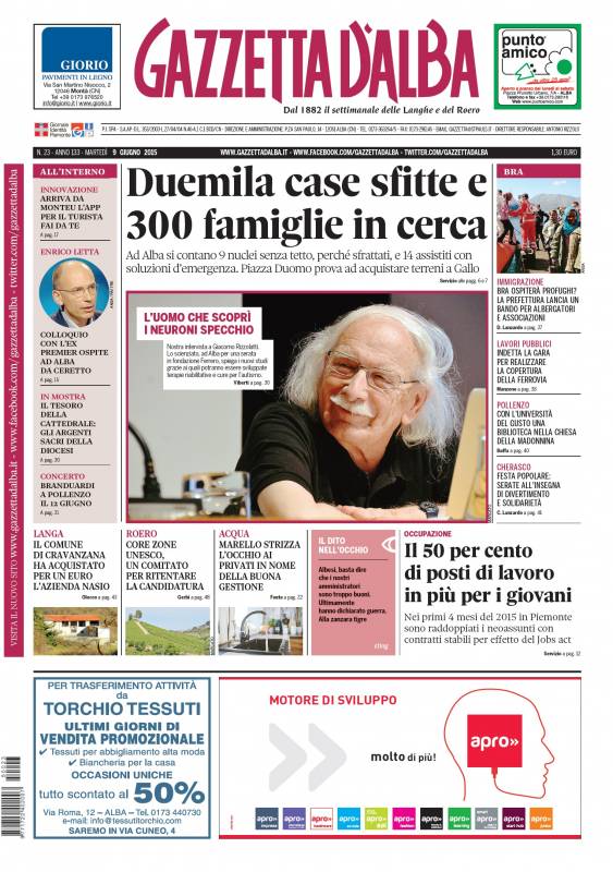 La copertina di Gazzetta d’Alba del 9 giugno 2015 8 Giugno 2015 Alba, Primo Piano Versione accessibile ALBA La copertina del numero 23 di Gazzetta d’Alba, disponibile in edicola e in formato digitale a partire da martedì 9 giugno 2015. anteprimaCopertina