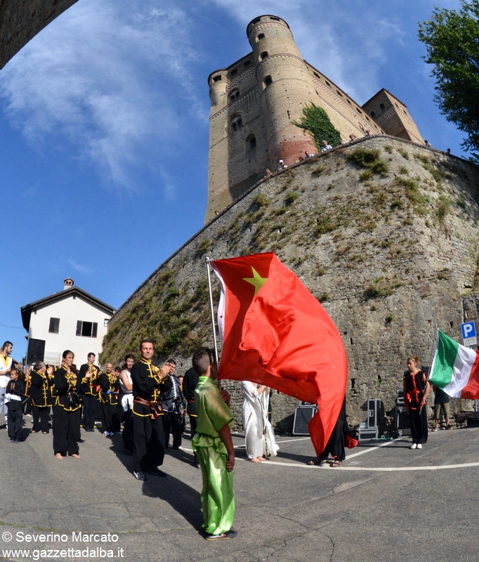 SERRALUNGA. Al castello di Serralunga sabato c’è stato il taglio del nastro in differita della Biennale Italia-Cina. A quasi un mese dall’avvio della mostra, in piazza Umberto I sono sfilati i figuranti in costume imperiale tradizionale.