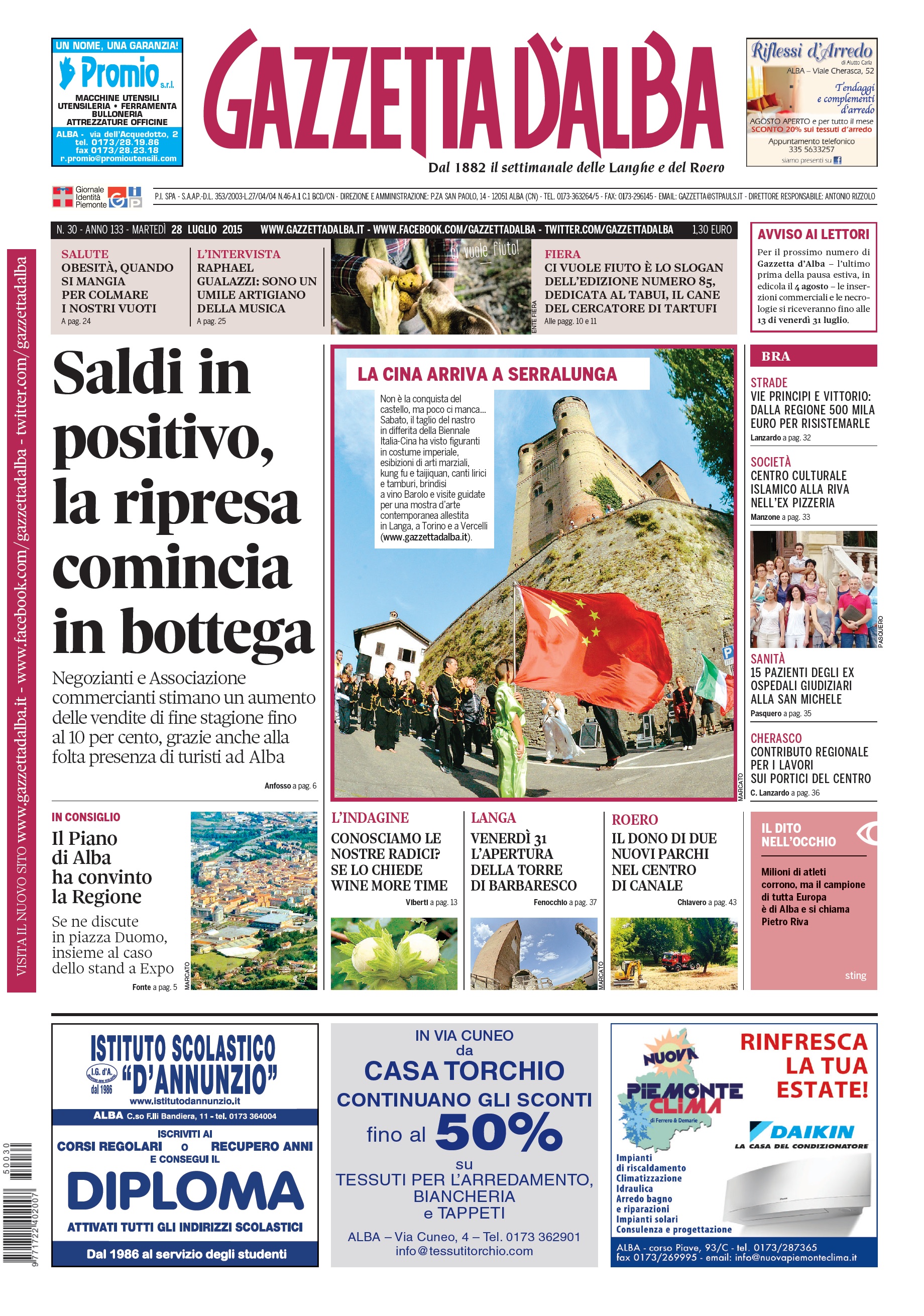 La copertina di Gazzetta d’Alba del 28 luglio 2015 27 Luglio 2015 Alba, Primo Piano Versione accessibile ALBA La copertina del numero 30 di Gazzetta d’Alba, disponibile in edicola e in formato digitale a partire da martedì 28 luglio 2015. anteprimaCopertina