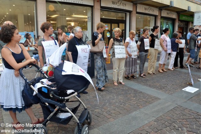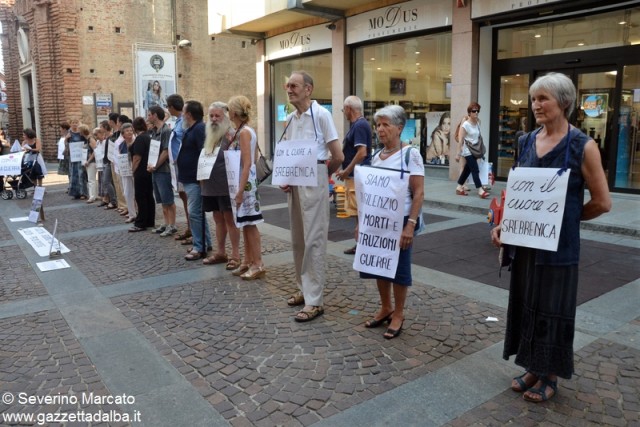 ALBA. Il gruppo albese di Donne in nero contro la guerra ha manifestato sabato 11 luglio, in via Maestra, per ricordare il massacro di Srebrenica, in Bosnia Erzegovina, nel ventesimo anniversario. Alla manifestazione silenziosa hanno partecipato numerose persone, dalle giovani madri alle anziane signore, unite nell’intento di “Ricordare tutto, perché mai più si ripeta”.