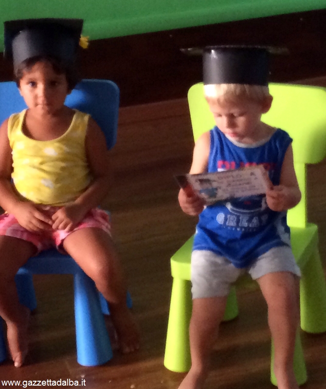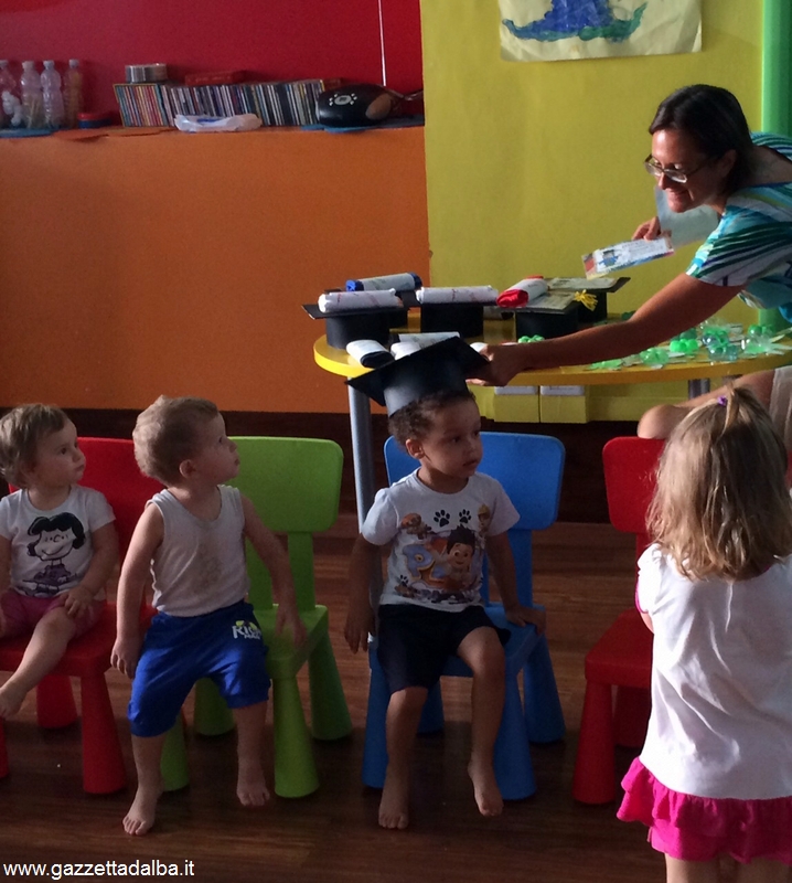 ALBA. Anche per i piccolissimi ospiti del baby parking Ottavo nano è stato tempo di diplomi. La responsabile della struttura, Anna Bianco, e le sue collaboratrici, Elena, Livia, Marzia e Giorgia hanno riunito mamme, papà e bimbi per una festa divertente e colorata, prima della pausa estiva.