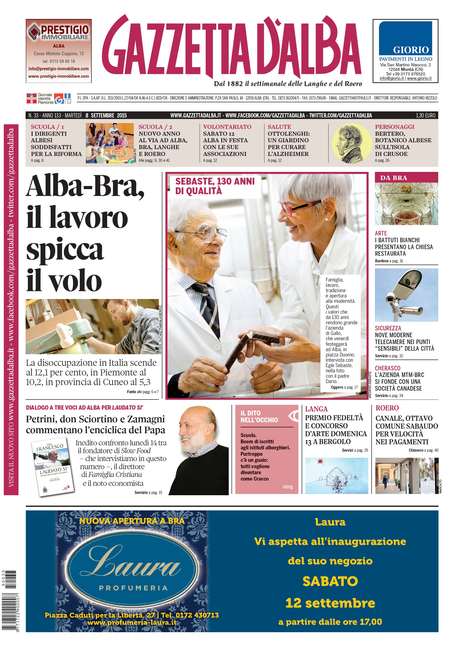 La copertina di Gazzetta d’Alba dell’8 settembre 2015 7 Settembre 2015 Alba, Primo Piano Versione accessibile ALBA La copertina del numero 33 di Gazzetta d’Alba, disponibile in edicola e in formato digitale a partire da martedì 8 settembre 2015. anteprimaCopertina