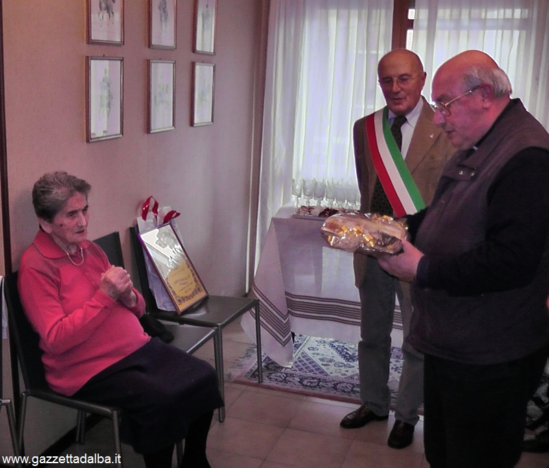 Nella foto: Maria Castelli Collin durante i festeggiamenti per il suo centesimo compleanno