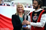 ALBA Il memorial Destefanis-Pescarmona, domenica 25 ottobre, ha visto gli smalti albesi, bianco e rosso, rinnovarsi nei costumi e vincere tutto. I padroni di casa hanno avuto la meglio in ogni competizione – singolo, coppia, piccola squadra, gara musici e grande squadra – lasciando il secondo posto al rione Don Bosco di Asti e il terzo agli sbandieratori e musici Città di Grugliasco. «Il trofeo, un drago reggitore di due candele, verrà subito appeso in sede» dice Pierluigi Castellengo, vicepresidente degli sbandieratori e musici città di Alba.