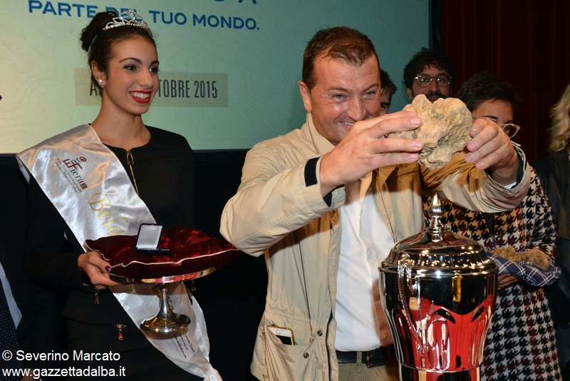 Il trifolao Davide Curzettil trifolao Davide Curzetti con il tartufo da 910 grammi.