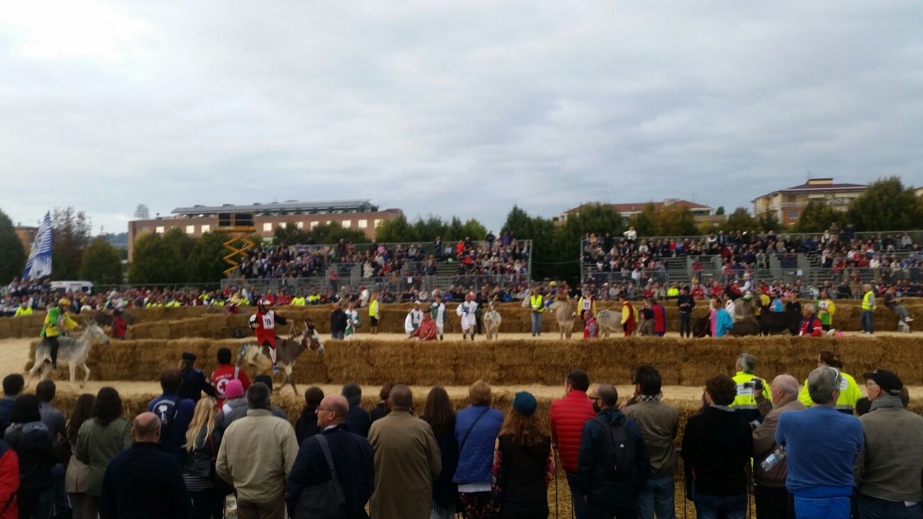 Si è corso, in attesa della finale, il primo Palio delle città gemelle: è stato vinto dall’asino Anice condotto dal fantino Luca Massimino del borgo San Martino abbinato alla città americana di Medford.