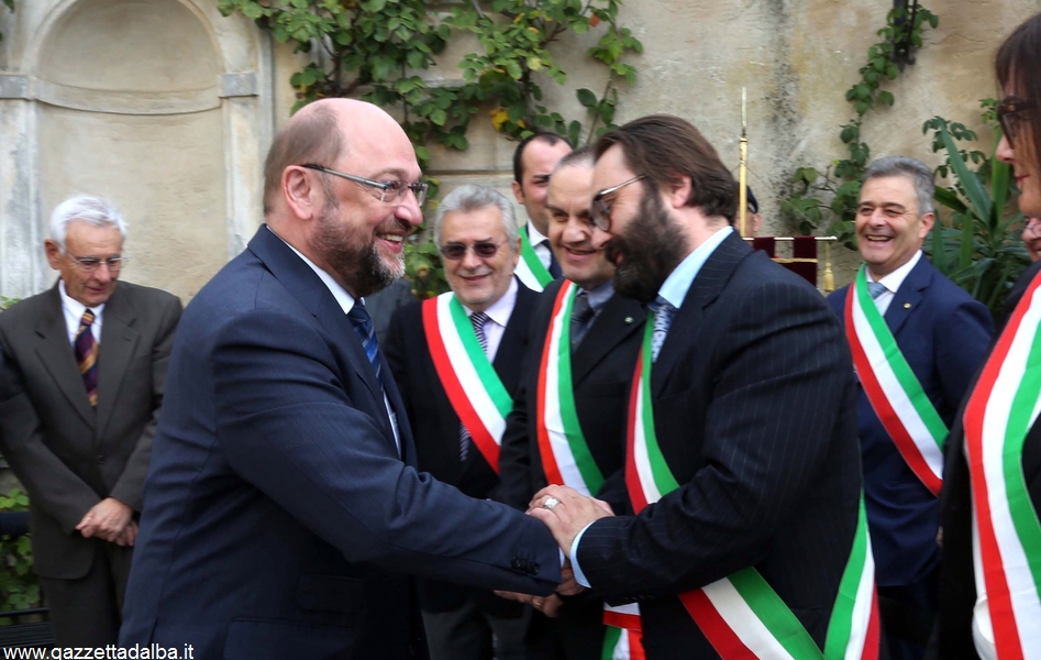 MONFORTE D’ALBA «A Monforte è facile sentirsi a casa». A dichiararlo è l’ultimo cittadino di Monforte in ordine di acquisizione, probabilmente il primo in ordine di prestigio. È Martin Schulz, presidente del Parlamento europeo, al quale sabato 10 ottobre 2015 è stata conferita la cittadinanza onoraria. La cerimonia si è tenuta nell’Auditorium Horszowki.