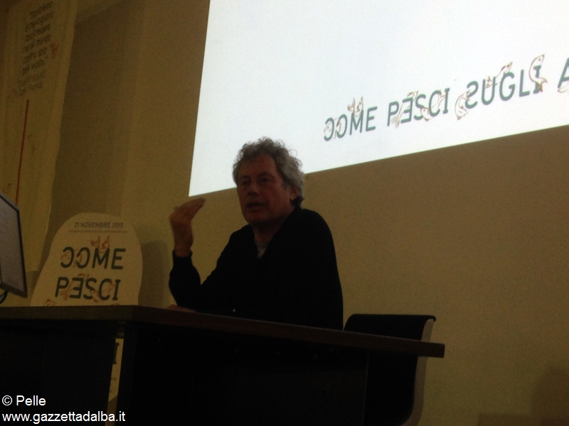 Come pesci sugli alberi Giacomo Stella osserva uno dei pannelli che riportano frasi di dislessici famosi(47)Nel convegno, che ha affrontato il tema da diversi punti di vista, da quello psicologico, a quello neurologico a quello didattico, Giacomo Stella ha richiamato la scuola italiana  alle sue responsabilità: «Ci sono voluti anni per capire che i dislessici non erano bambini pigri. La dislessia ha una base genetica, ma questo non vuol dire che non si può intervenire. Noi siamo il risultato di come le nostre caratteristiche personali impattano con l’ambiente. Se l’ambiente è favorevole c’è sviluppo. Altrimenti emergono le difficoltà. Il problema non è la dislessia. Il problema è la scuola. La legge 170 è la prima vera riforma della scuola, perché dal 2010 ha imposto un diverso modo di valutare gli studenti e gli eventuali insuccessi scolastici. Ha imposto un cambiamento nella didattica. La scuola oggi sa insegnare ai bambini bravi ma non facilita l’apprendimento. Si apprende a casa. Specialmente per i bambini dislessici il “grosso del lavoro” viene fatto a casa, in famiglia. Se Alba vuole diventare un’eccellenza deve cambiare questo paradigma. La scuola deve aiutare tutti ad imparare».
